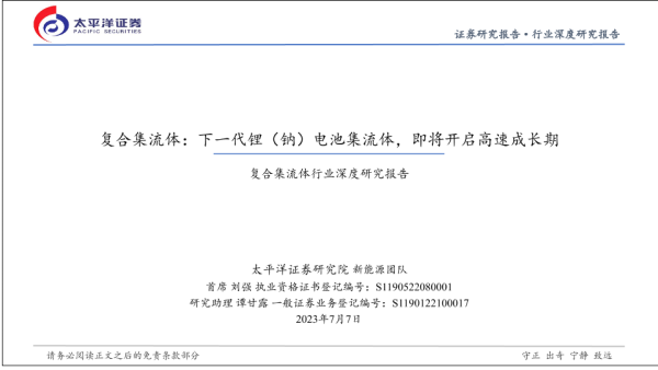 【太平洋证券】【20230710】复合集流体行业深度研究报告:复合集流体:下一代锂(钠)电池集流体,即将开启高速成长期-41页 行业研究