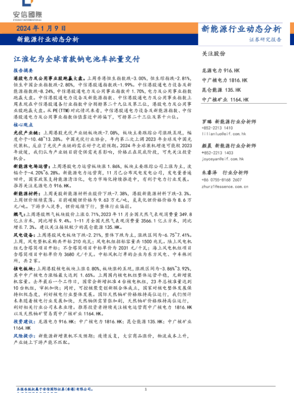 【国证国际】【20240109】新能源行业动态分析:江淮钇为全球首款钠电池车批量交付-13页 行业研究