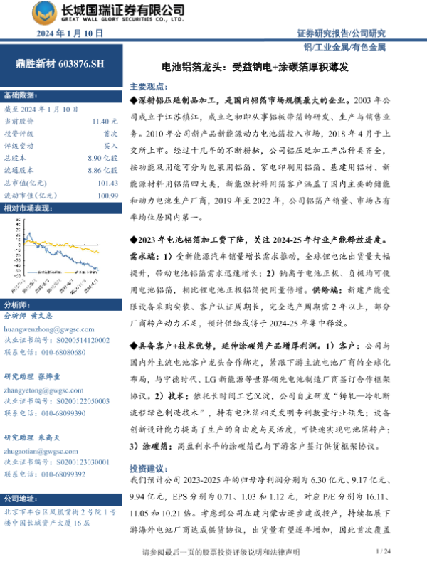【长城国瑞证券】【20240110】电池铝箔龙头:受益钠电+涂碳箔厚积薄发-24页 行业研究