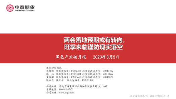 【中泰期货】【20230305】黑色产业链月报:两会落地预期或有转向,旺季来临谨防现实落空-162页 行业研究