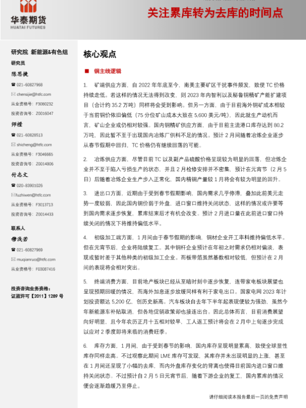 【华泰期货】【20230205】铜月报:关注累库转为去库的时间点-23页 行业研究
