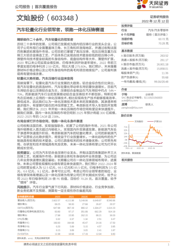 【天风证券】【20221212】汽车轻量化行业领军者,领跑一体化压铸赛道-26页 行业研究