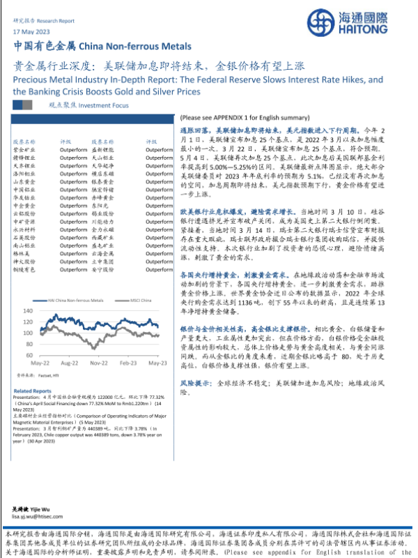 【海通国际】【20230518】贵金属行业深度:美联储加息即将结束,金银价格有望上涨-23页 行业研究