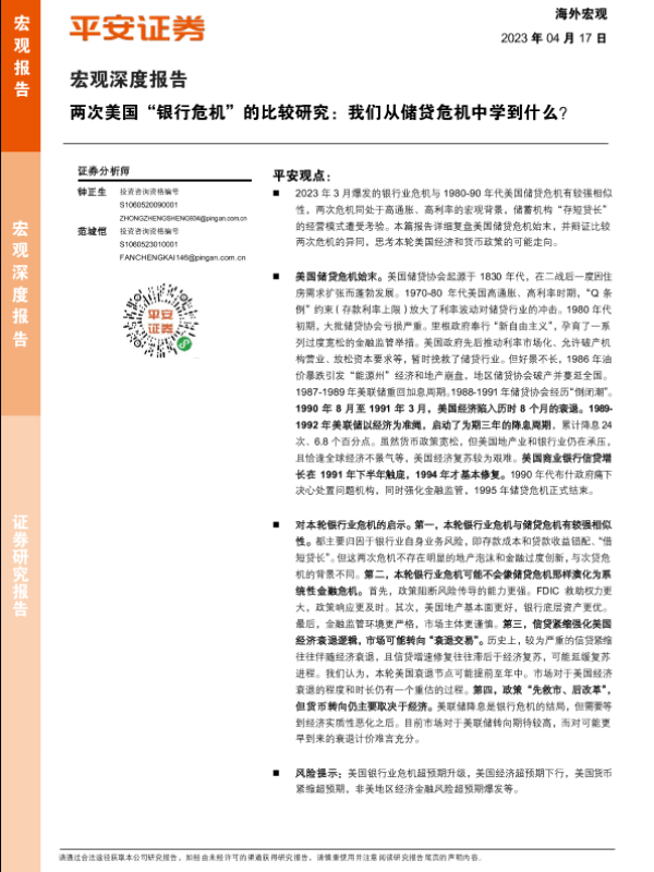 【平安证券】【20230417】两次美国“银行危机”的比较研究:我们从储贷危机中学到什么?-16页 行业研究