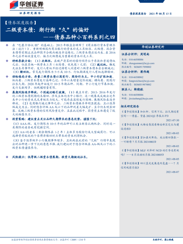 【华创证券】【20210813】债券品种小百科系列之四:二级资本债,渐行渐“久”的偏好-21页 行业研究