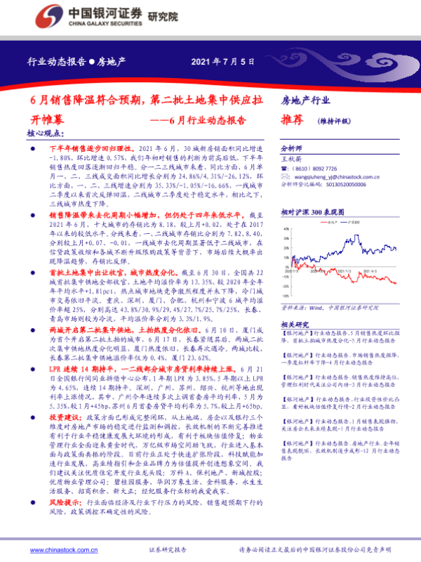【银河证券】【20210705】房地产行业6月行业动态报告:6月销售降温符合预期,第二批土地集中供应拉开帷幕-30页 行业研究