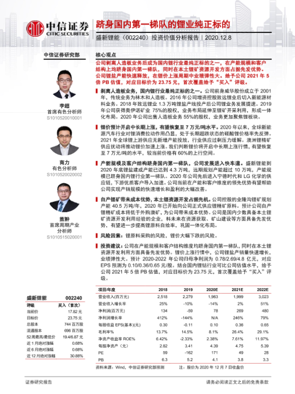 【中信证券】【20201208】跻身国内第一梯队的锂业纯正标的:盛新锂能(002240)投资价值分析报告-24页 行业研究