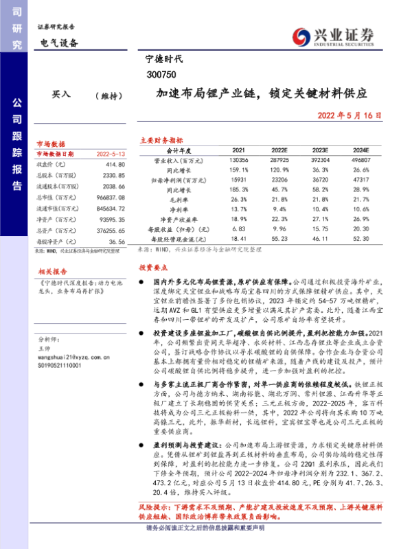 【兴业证券】【20220516】加速布局锂产业链,锁定关键材料供应-30页 行业研究