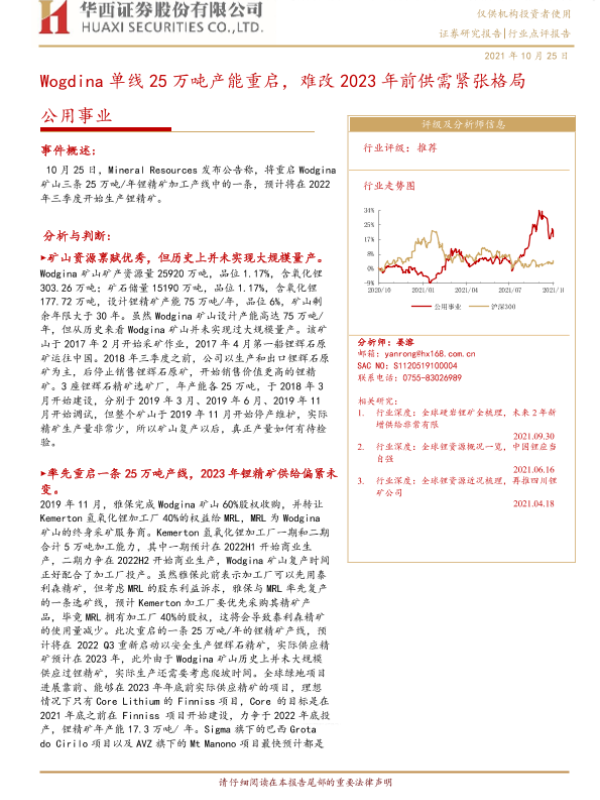 【华西证券】【20211025】Wogdina单线25万吨产能重启,难改2023年前供需紧张格局-4页 证券期货研究报告