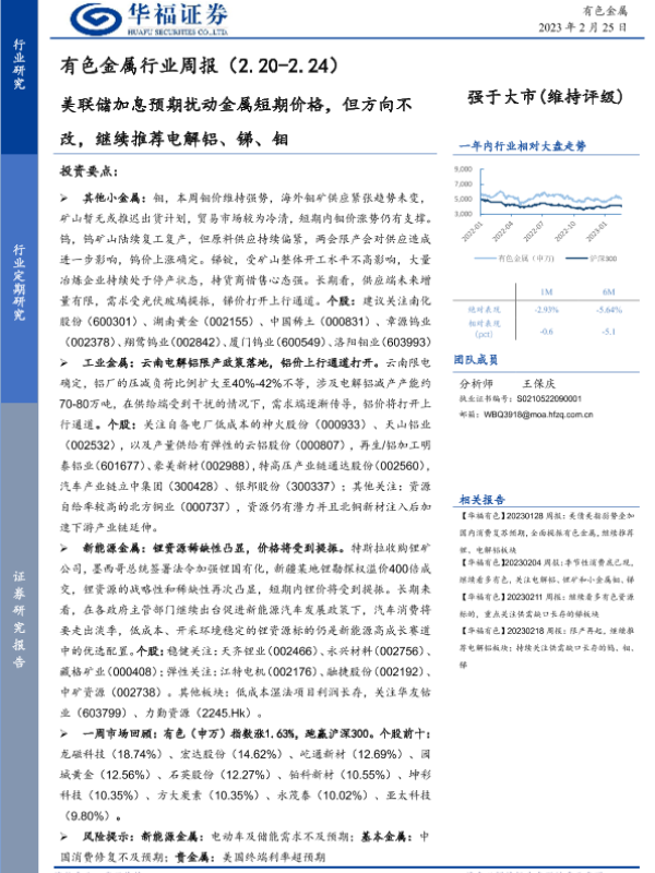 【华福证券】【20230225】有色金属行业周报:美联储加息预期扰动金属短期价格,但方向不改,继续推荐电解铝、锑、钼-15页 行业研究