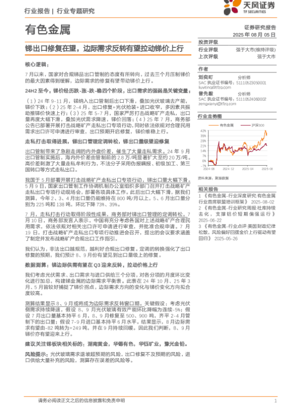 【天风证券】【20250805】有色金属行业:锑出口修复在望,边际需求反转有望拉动锑价上行-7页 行业研究