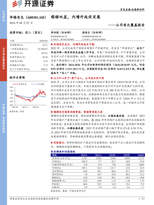 【开源证券】【20240807】华锡有色-600301.SH-公司首次覆盖报告:锡锑双星,内增外延促发展-27页 公司研究