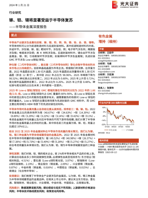 【光大证券】【20240121】20240121-光大证券-半导体金属深度报告:镓、钽、锡将显著受益于半导体复苏-60页 行业研究