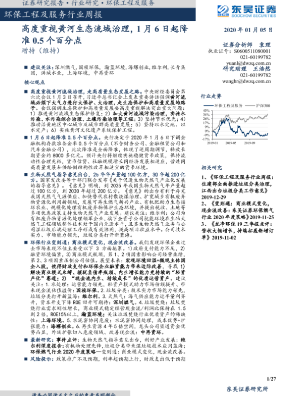 【东吴证券】【20200105】环保工程及服务行业周报:高度重视黄河生态流域治理-27页 行业研究