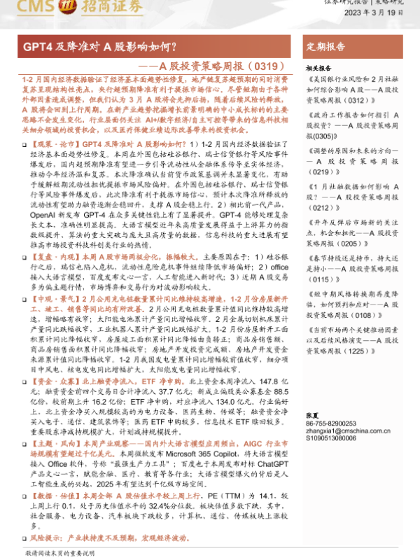 【海通证券】【20230319】A股投资策略周报:GPT4及降准对A股影响如何?-28页 行业研究