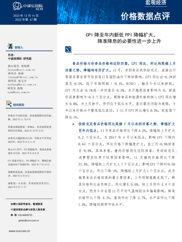 【中诚信国际】【20231109】CPI降至年内新低PPI降幅扩大,降准降息的必要性进一步上升-7页 行业研究