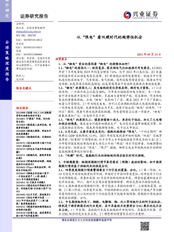 【兴业证券】【20210924】从“限电”看双碳时代的趋势性机会-21页 行业研究