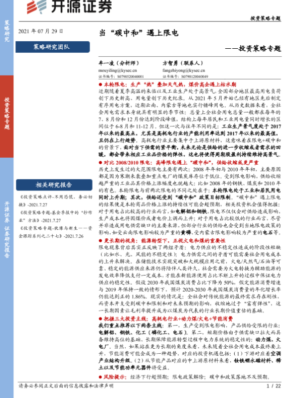 【开源证券】【20210729】投资策略专题:当“碳中和”遇上限电-22页 行业研究