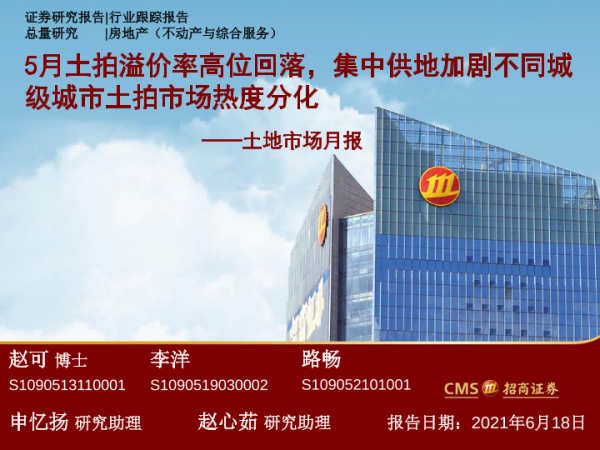 【海通证券】【20210618】房地产行业土地市场月报:5月土拍溢价率高位回落,集中供地加剧不同城级城市土拍市场热度分化-57页 行业研究