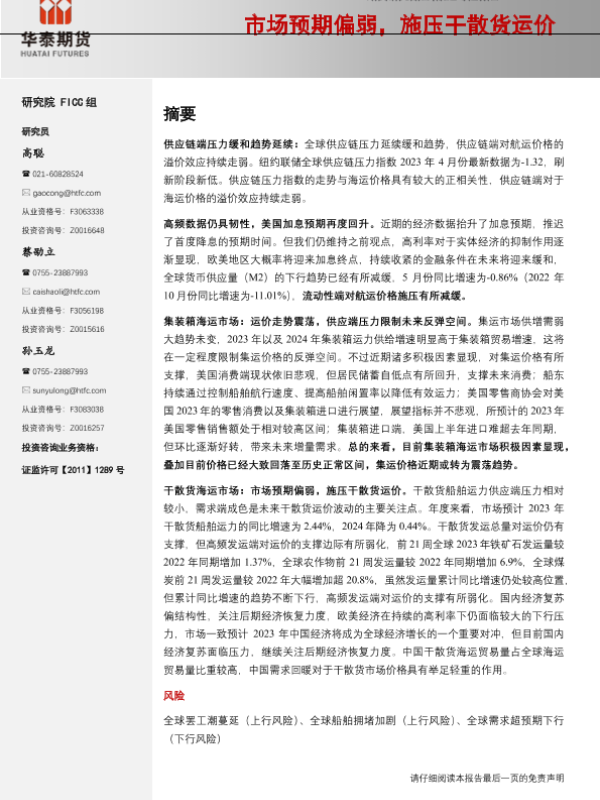 【华泰期货】【20230604】航运专题报告:市场预期偏弱,施压干散货运价-28页 行业研究