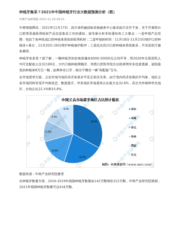 【中商产业研究院】【2021】2021年中国种植牙行业大数据预测分析-2页 行业研究