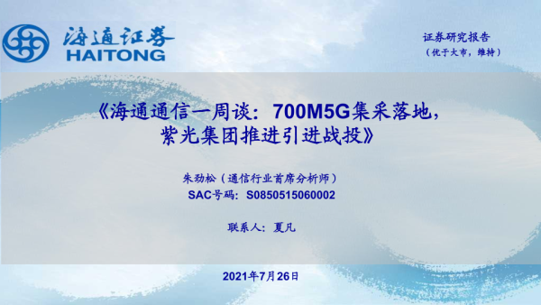 【海通证券】【20210726】海通通信一周谈:700M5G集采落地, 紫光集团推进引进战投-12页 行业研究