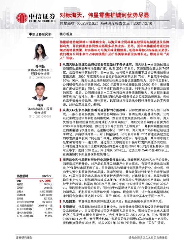 【中信证券】【20211210】20211210-中信证券-伟星新材-002372.SZ-系列深度报告之三:对标海天,伟星零售护城河优势尽显-24页 行业研究