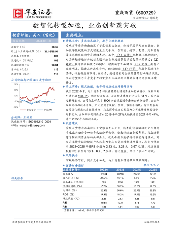 【华安证券】【20230630】20230630-华安证券-重庆百货-600729.SH-数智化转型加速,业态创新获突破-28页 行业研究