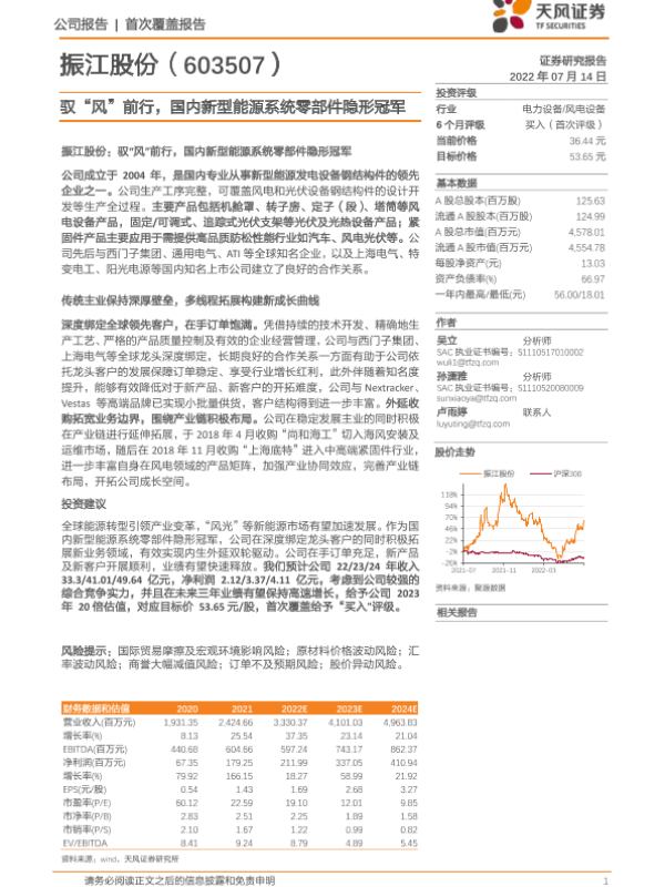 【天风证券】【20220714】驭“风”前行,国内新型能源系统零部件隐形冠军-24页 行业研究