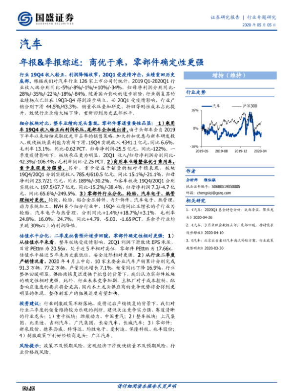 【国盛证券】【20200505】汽车年报&季报综述:商优于乘,零部件确定性更强-26页 行业研究