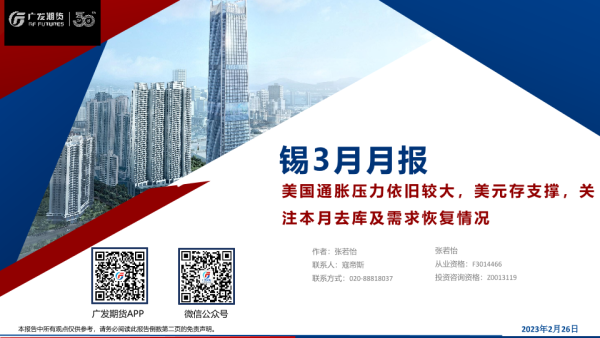 【广发期货】【20230226】锡3月月报:美国通胀压力依旧较大,美元存支撑,关注本月去库及需求恢复情况-20页 行业研究