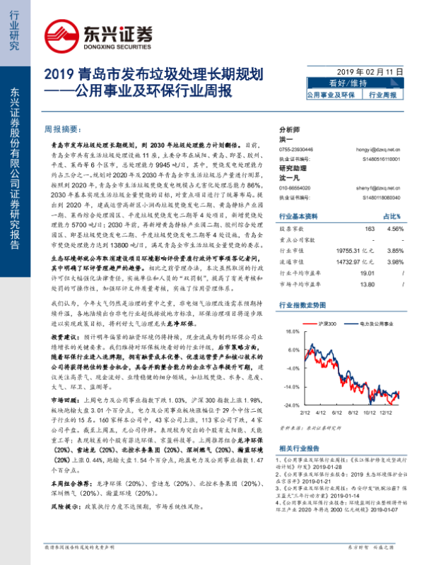 【东兴证券】【20190211】2019青岛市发布垃圾处理长期规划-6页 行业研究