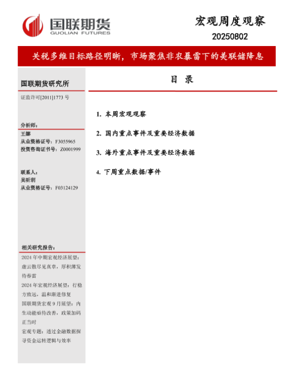 【国联期货】【20250802】宏观周度观察_关税多维目标路径明晰_市场聚焦非农暴雷下的美联储降息-14页 宏观策略