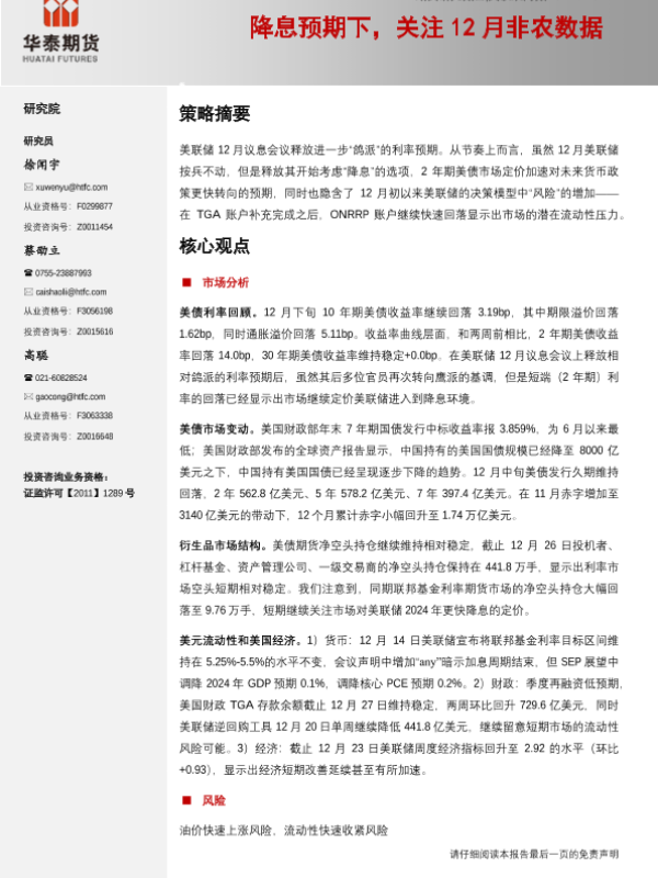 【华泰期货】【20240101】美债双周报:降息预期下,关注12月非农数据-11页 行业研究
