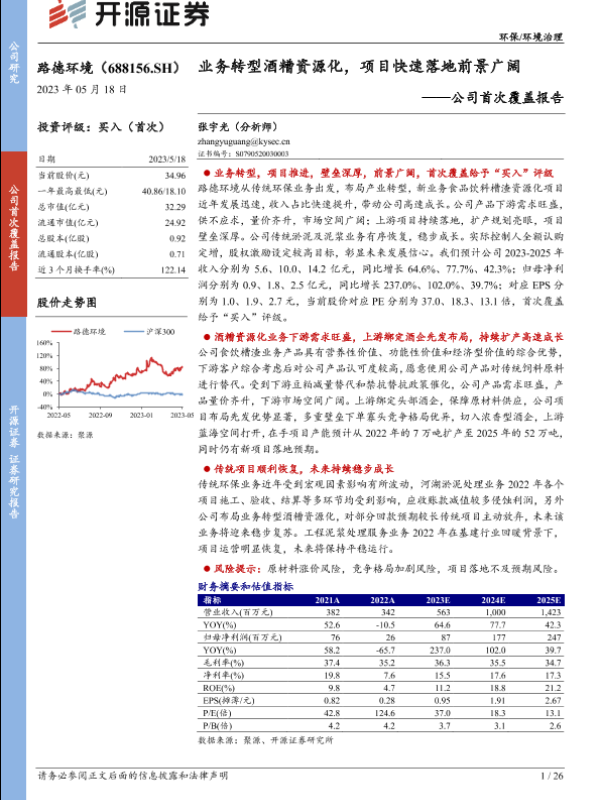 【开源证券】【20230519】路德环境公司首次覆盖报告 业务转型酒糟资源化,项目快速落地前景广阔-26页 行业研究