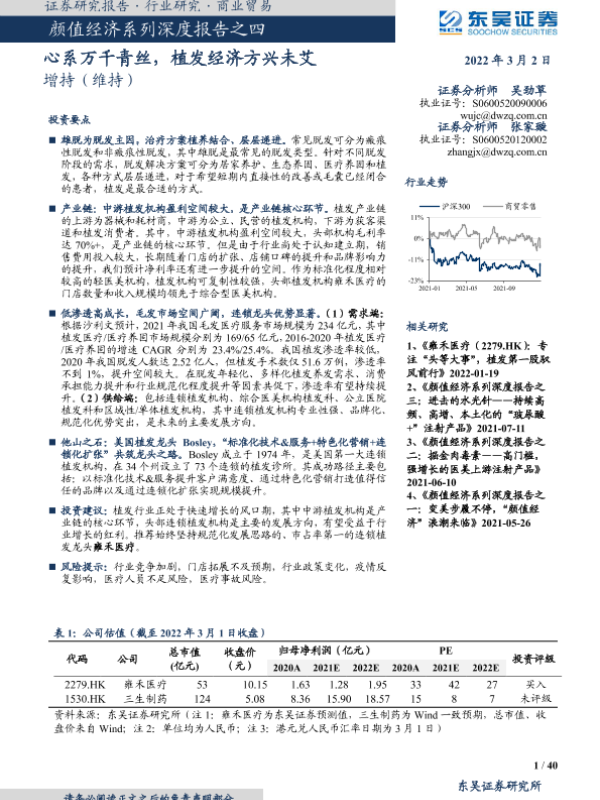 【东吴证券】【20220302】商业贸易行业颜值经济系列深度报告之四:心系万千青丝,植发经济方兴未艾-40页 行业研究