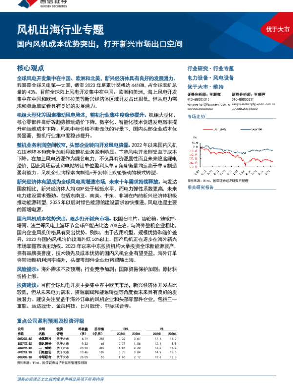【国信证券】【20240626】风机出海行业专题:国内风机成本优势突出,打开新兴市场出口空间-22页 行业研究