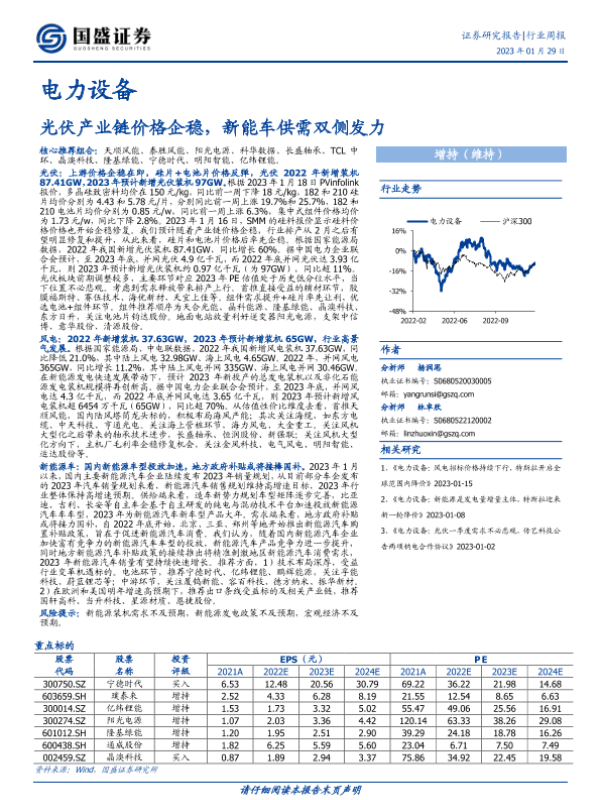 【国盛证券】【20230129】电力设备行业周报:光伏产业链价格企稳,新能车供需双侧发力-17页 行业研究