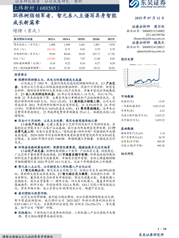 【东吴证券】【20250712】上纬新材(688585)环保树脂领军者,智元系入主谱写具身智能成长新篇章-24页 公司研究