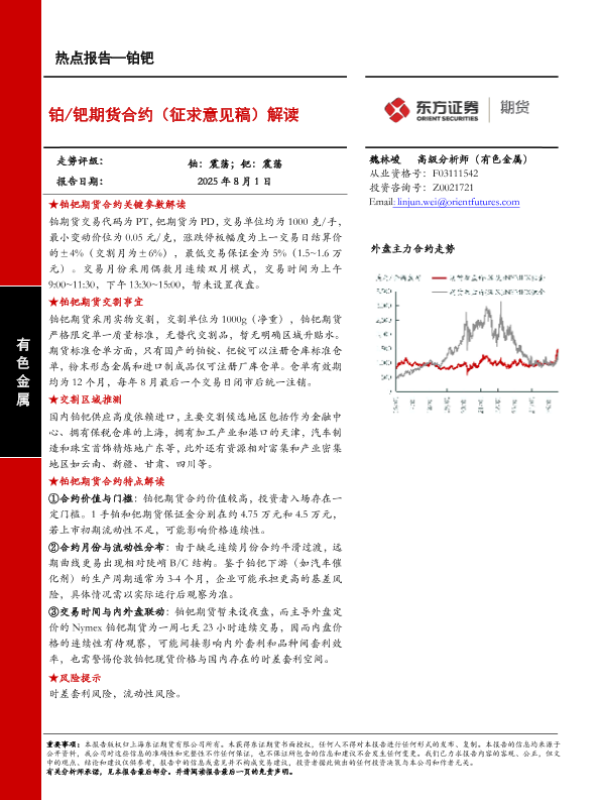 【东证期货】【20250801】铂钯热点报告_铂_钯期货合约(征求意见稿)解读-15页 证券期货研究报告
