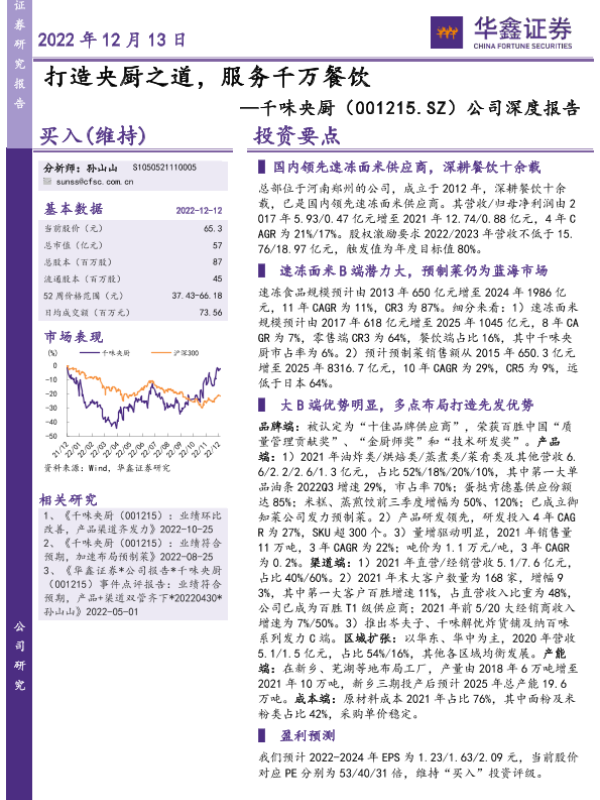 【华鑫证券】【20221213】公司深度报告:打造央厨之道,服务千万餐饮-64页 行业研究