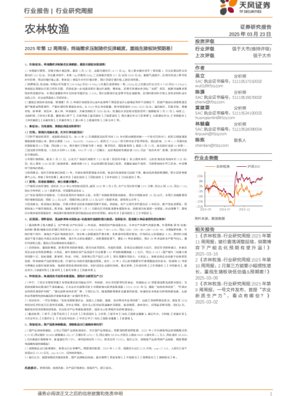 【天风证券】【20250323】农林牧渔2025年第12周周报:终端需求压制猪价反弹幅度,重视生猪板块预期差!-15页 行业研究