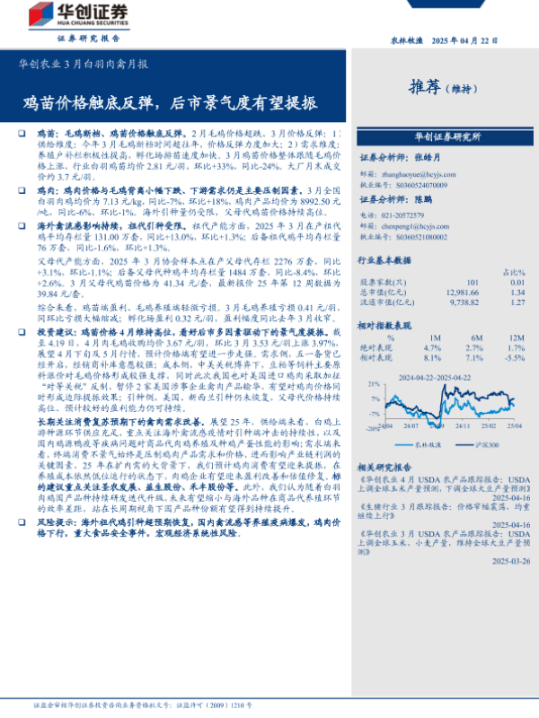 【华创证券】【20250422】农业行业3月白羽肉禽月报-11页 证券期货研究报告