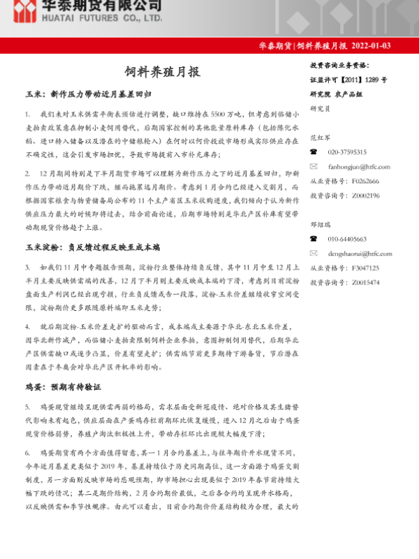 【华泰期货】【20220103】饲料养殖月报-20220103-15页 行业研究