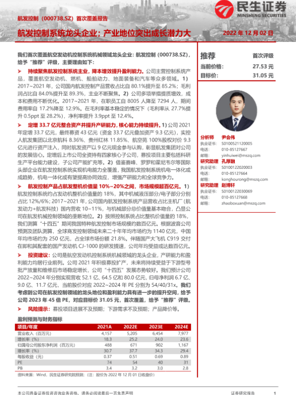 【民生证券】【20221202】首次覆盖报告:航发控制系统龙头企业;产业地位突出成长潜力大-23页 行业研究