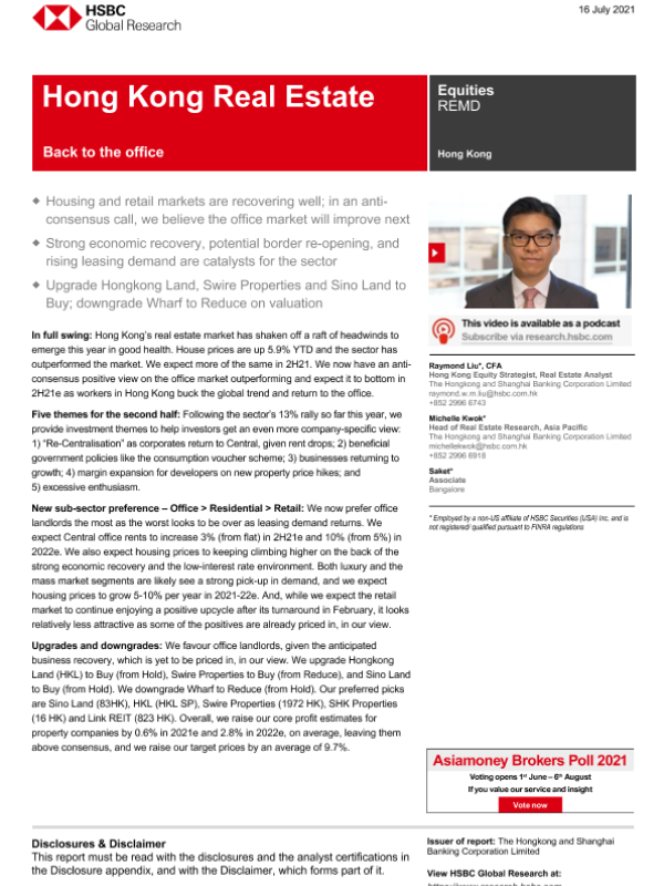 【The Hongkong and Shanghai Banking Corporation Limited】【20210716】HSBC-香港房地产行业-回到办公室-88页 行业研究