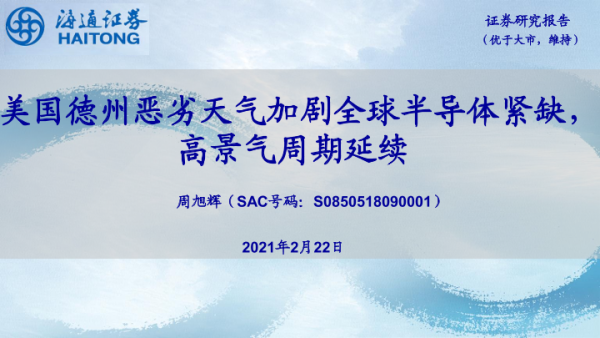 【海通证券】【20210222】美国德州恶劣天气加剧全球半导体紧缺,高景气周期延续-11页 行业研究