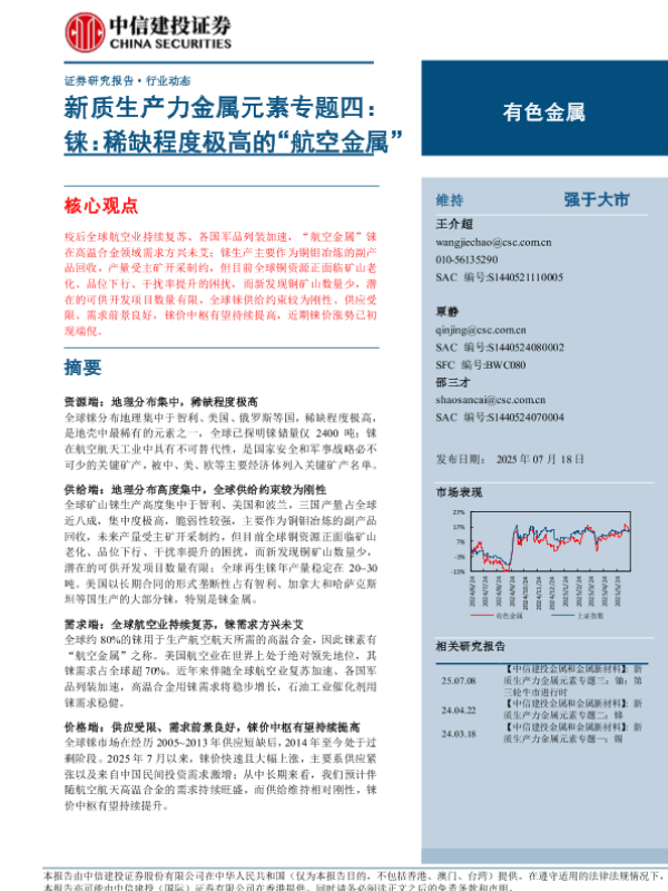 【中信建投证券】【20250718】有色金属行业新质生产力金属元素专题四:铼,稀缺程度极高的“航空金属”-14页 证券期货研究报告