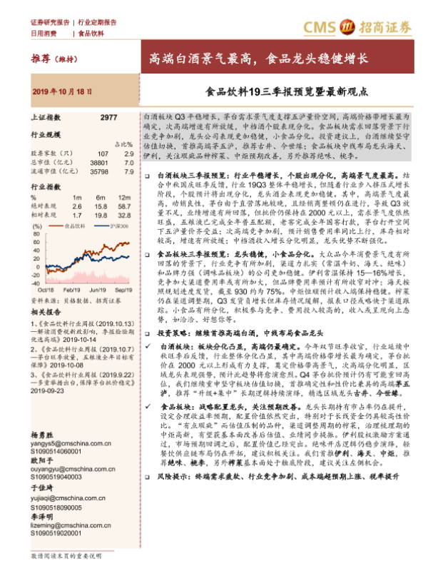 【海通证券】【20191018】食品饮料19三季报预览暨最新观点-10页 行业研究