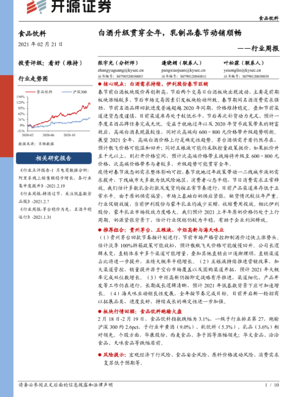 【开源证券】【20210221】食品饮料行业周报:白酒升级贯穿全年,乳制品春节动销顺畅-10页 行业研究